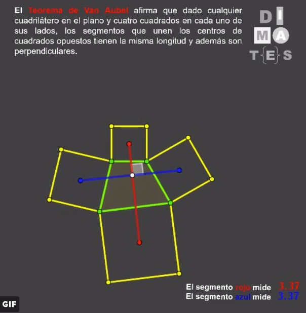 Dado un cuadrilátero cualquiera en el plano y cuatro cuadrados, uno en cada uno de sus lados, los segmentos que unen los centros de los cuadrados opuestos tienen la misma longitud y, además, son perpendiculares.