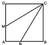 Los segmentos CM y CN dividen el cuadrado ABCD, de lado 3 cm, en tres partes de igual área. ¿Cuánto mide el segmento CM?